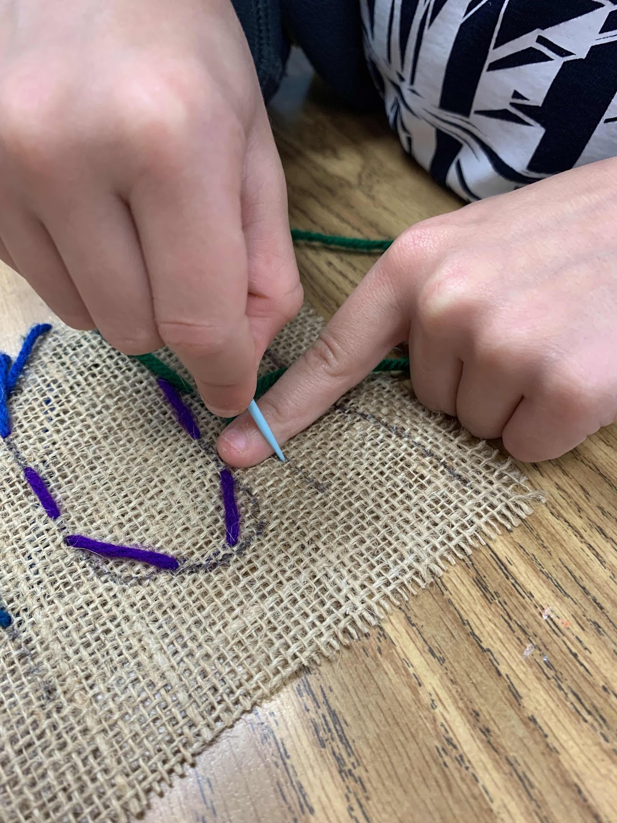 My kindergarteners sewed a sun shape and filled the middle with doodads for the face - really cute!